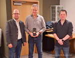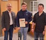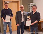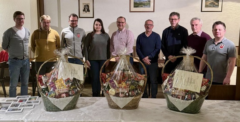 Mit auf dem Bild sind Erich Loos als Dirigent (2. von links) und Andreas Wolpert als Vorstand (rechts)