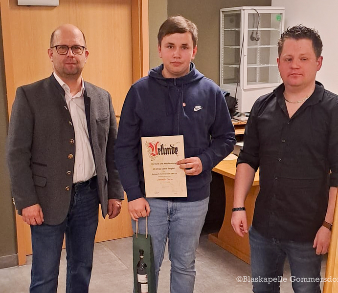- Verabschiedung aus aktivem Bereich - Alois Baumgart (Mitte). Außer seinem Engangement als aktiver Musiker bei der Blaskapelle, bei der er seit 1959 spielt, war er 22 Jahre in der Vorstandschaft. Dort bekleidete er die Posten als Kassierer, 2. Vorsitzender und 1. Vorsitzender der Blaskapelle Gomemrsdorf.